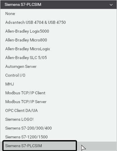 Factory I/O uygulamasında üst menüden “File>Drivers” menüsüne giderek sol üstte”DRIVER”ın hizasında yanında bulunan açılır listeden “Siemens S7-PLCSIM” seçilmiştir. Bu aşamada TIA Portal-PLCSIM üzerinden Factory I/O ile haberleşmesi tamamlanmıştır.