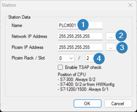 3 Numara: PLCSim IP Adress’in en sağında bulunan “…” sembolüne tıklayarak PLCSIM’in IP adresinin eklenmesi gerekmektedir.