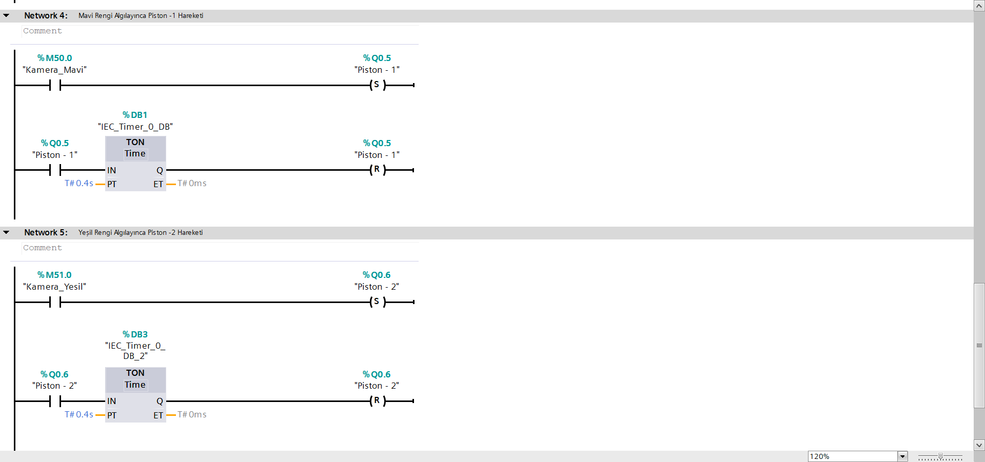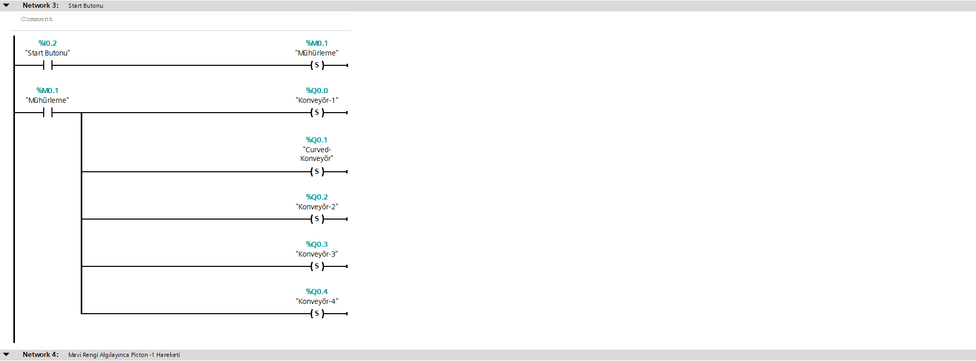 Aşağıdaki resimlerde belirtilen senaryoya yönelik LD (Ladder Diagram) programı gösterilmektedir.